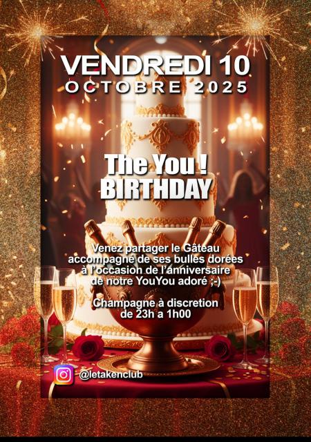 Venez partager le gâteau accompagné de ses bulles dorées à l'occasion de l'anniversaire de notre YouYou adoré.